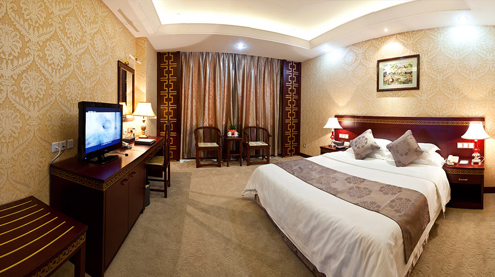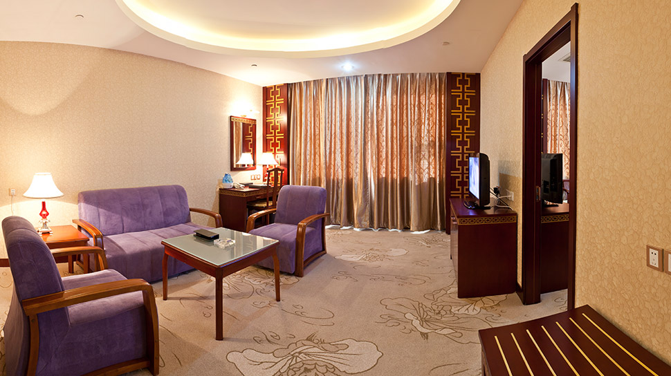 객실의 인테리어는 화려하고 패션너블하며 따뜻하고 편안한 분위기를 조성하고 독립적인 침실과 거실이 있으며 거실에는 화장실이 있다.예약 및 자문 0631-5973888